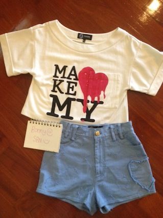 srs make my heart melt crop + heart patch shorts sz.2 11,500บาท