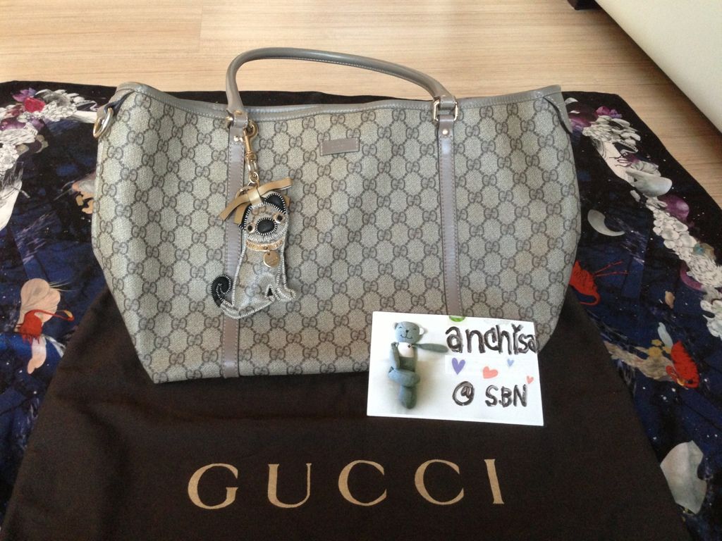 ใบแรก Used Gucci Bag สภาพดีนะคะ มีเพียงแค่รอยย่นของหูจับ ซึ่งใช้งานก็ต้องเป็นทุกคนอยู่แล้วคะ ใบนี้ถือว่าใช้งานได้ดีมาก ใช้ใส่หนังสือ ใส่แฟ้มขนาด A4 ได้สบายๆ ขนาดพอๆ กับ naverfull ka แต่ถือแล้วดูดีกว่ากันเยอะ ไม่โหลด้วยคะ ตัวกระเป๋าและภายในไม่มีรอยเลอะเปรอะเปื้อนใดๆ ทั้งสิ้นนะคะ สีนี้เป็นสีออกเขียวเทา Classic ดูดี เข้าได้กับทุกชุดคะ มีแถมพวงกุญแจลายหมีลายเดียวกันให้ด้วยนะคะ ลายนี้เป็น limited edition ของปี 2011 ka อุปกรณ์ครบมีถุงผ้า และมีกล่องของพวงกุญแจ ระบุชื่อของเจ้าหมีชัดเจนนะคะ ขอขายเบาๆ ที่ 22,000 ka
