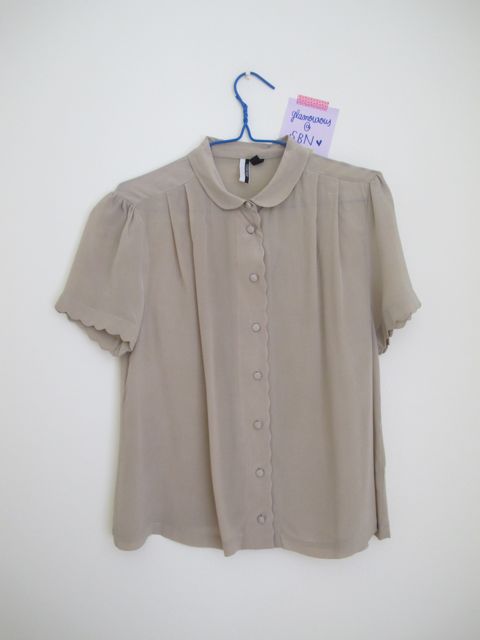 used once topshop scallop collar top เสื้อผ้าชีฟองเนื้อหนา ขอบ scallop สีนํ้าตาลเบจ