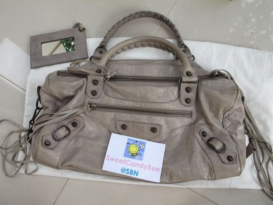 กระเป๋า Balenciaga Twiggy สีออกเขียวอ่อนนะคะ ไม่ทราบชื่อเหมือนกันว่าเรียกสีอะไรค่ะ มีรอยเปื้อนตามการใช้งานตามมุม สาย หูดำเล็กน้อยพยายามถ่ายให้เห็นหลายๆ มุมในแสงธรรมชาติค่ะ แต่โดยรวมยังดูน่ารักนะคะ มีถุงผ้า การ์ดสีขาว ตัวอย่างหนังชิ่้นเล็กๆ ใครไม่ซีเรียสหิ้วเล่นๆ สบายๆค่ะSOLD