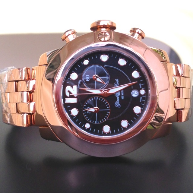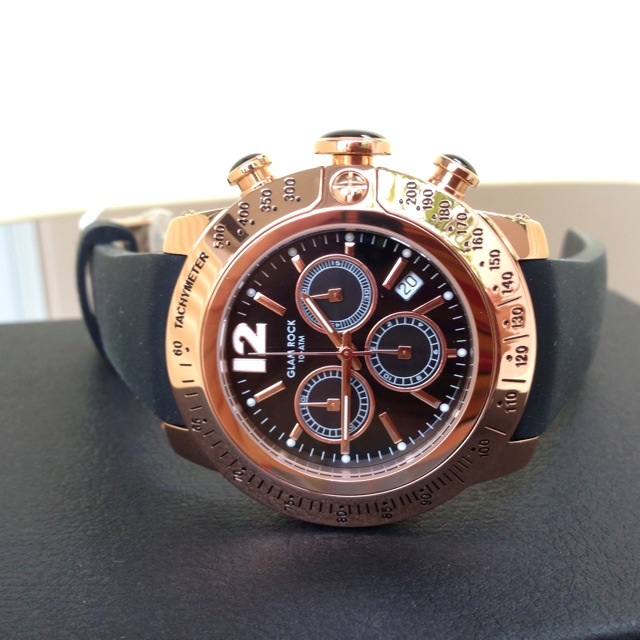 1.2 Glam Rock รุ่น Summer Time Chornograph & Date function ตัวเรือนสแตนเลสสตีล 46 mm. หน้าปัดลาย Guilloche ตัวเลขโรมันสายยางและกรอบยางซิลิโคนสีดำ มีตัวเดียวราคา SOLD