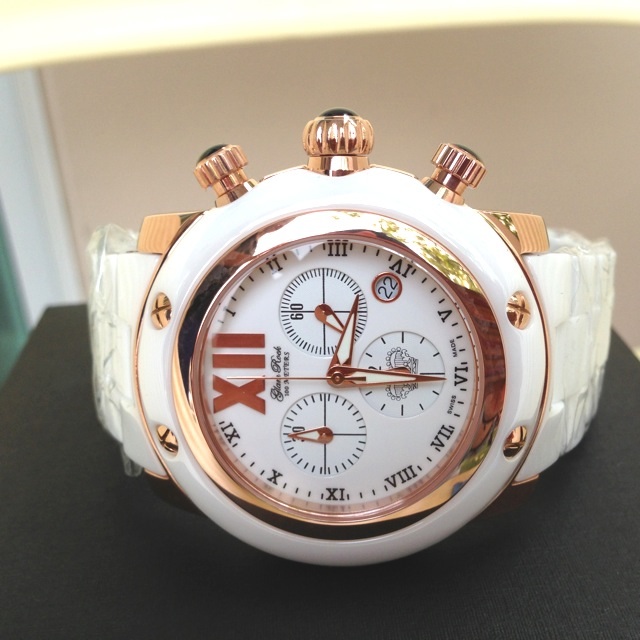 8. Glam Rock รุ่น Crazy Sexy Cool Chronograph White Diamond White พิ้งโกล กรอบเซรามิก 72 white diamonds set on subdials (0.35 ctw) and 10 white diamonds set on dial (0.1 ctw) ราคาโปรโมชั่นพิเศษ SOLD
