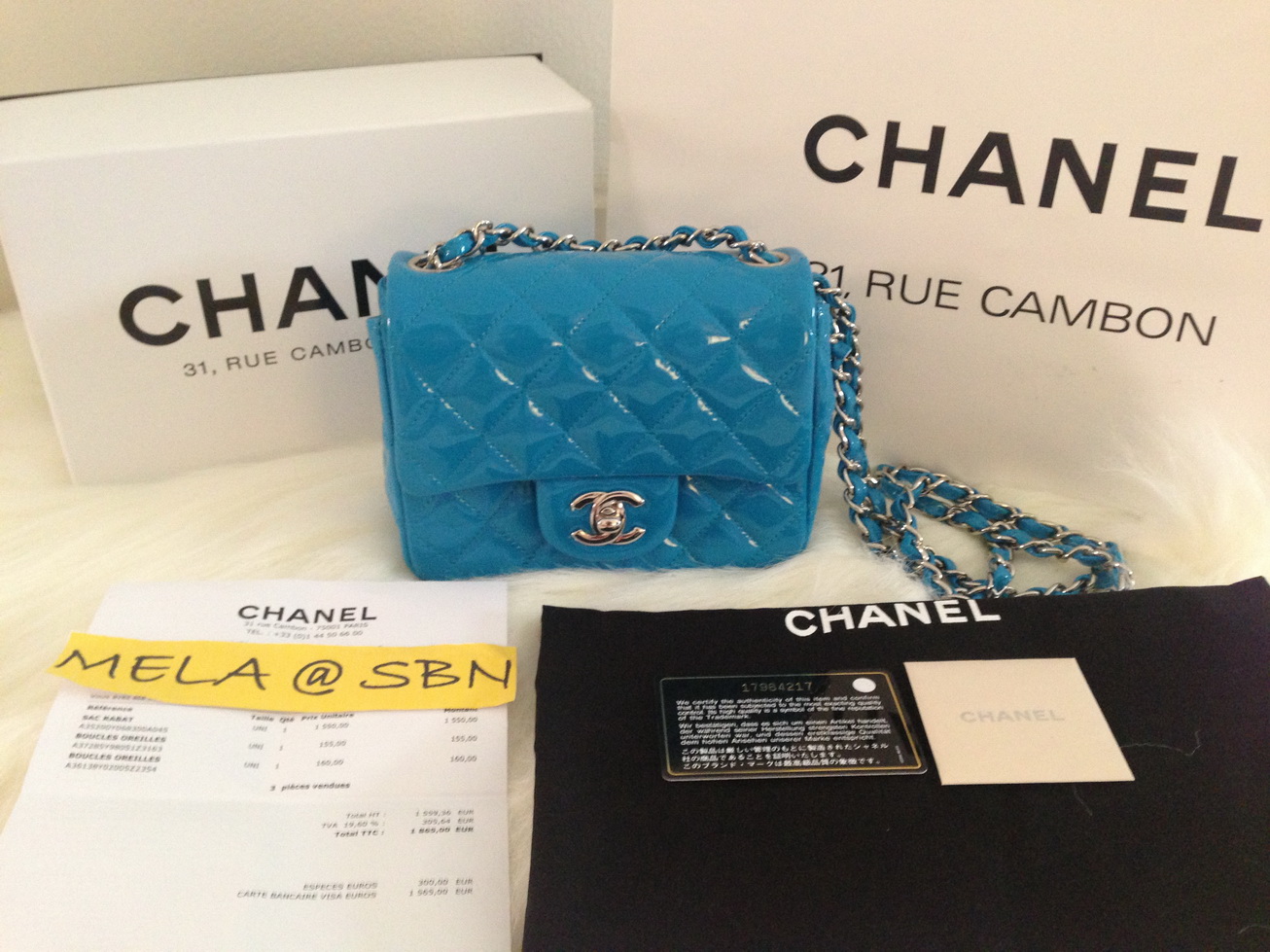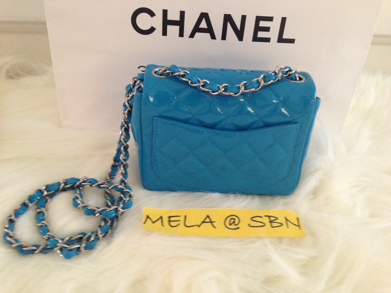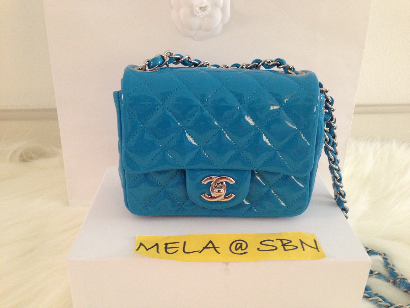 New Chanel mini square7" หนัง patent สีฟ้าแจ่มมากใหม่ล่าสุดคะ ราคา 74,999 บาท อุปกรณ์ครบทุกอย่างเหมือนไปซื้อเองค่ะ Hologram 179xxxxx