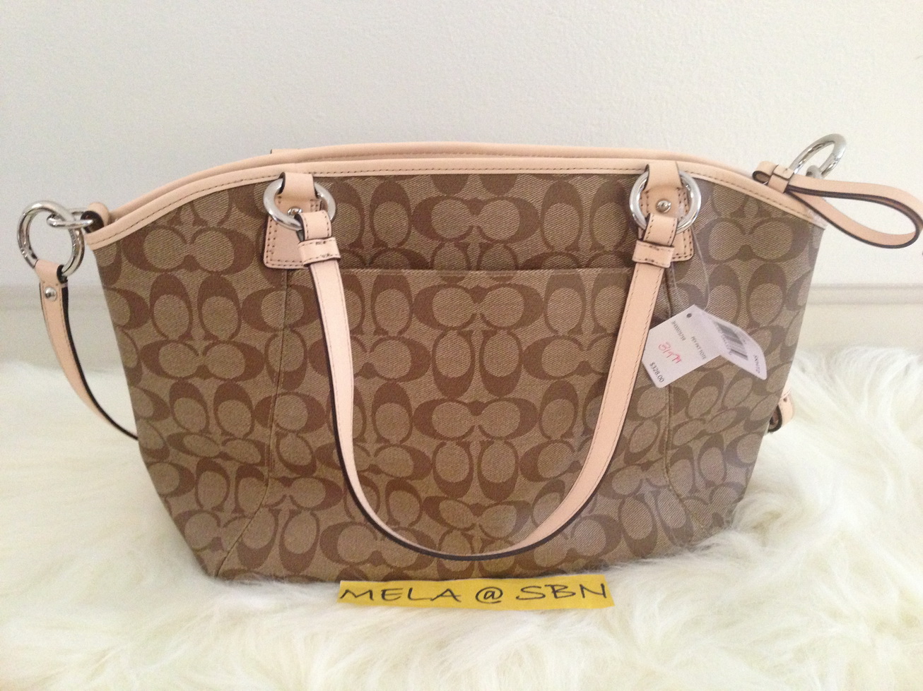 และมีสีน้ำตาลเข้มด้วยค่ะ กระเป๋าCOACH รุ่น F19817 PEY PKT TOTE (42 X 28 X 12 cm) กันน้ำคะ มีสายสำหรับถือและมีสายสะพายน่ารักมากๆค่ะ มีการ์ด สำเนาใบเสร็จ ถุงกระดาษ ไม่มีถุงผ้าให้นะคะ ที่ OUTLET เขาไม่ให้มาคะ ราคา 5,900 บาท