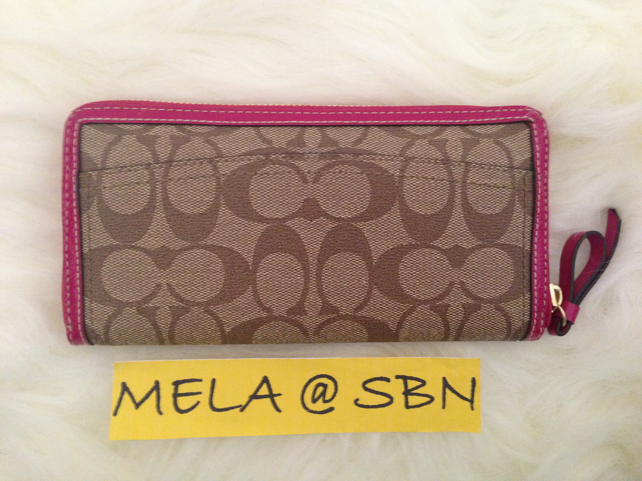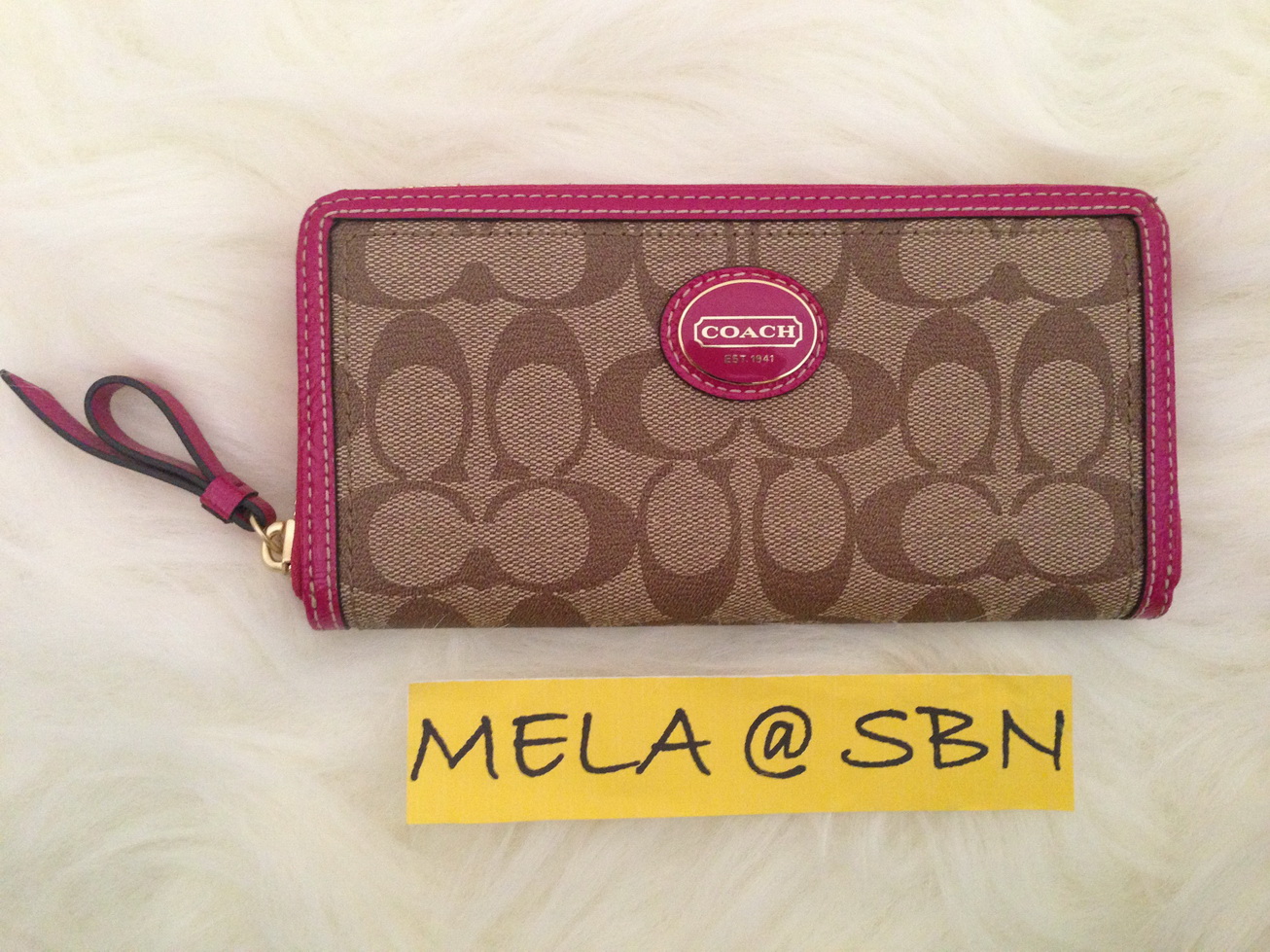 กระเป๋าสตางค์ยาว Coach ขอบสีชมพู ไม่เหมือนใคร (L20 x H11 CM) ราคา 4,400 บาท มีการ์ดถุงกระดาษ และสำเนาใบเสร็จ ไม่มีถุงผ้าให้นะค่ะ ที่ outlet เขาไม่ให้มาคะ