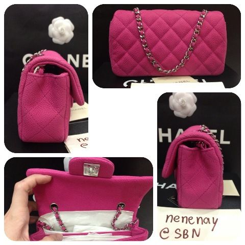 NEW CHANEL CLASSIC MINI 7"CAVIAR HOT PINK อะไหล่เงิน สีสวยมาก หายากมากค่ะ