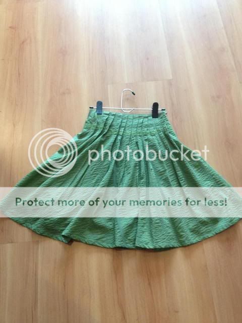 กระโปรงบานสีเขียวยี่ห้อgil ซักแล้วไม่เคยใส่ Free size เอวประมาณ26-27ค่ะ ยาว23ขายSOLD