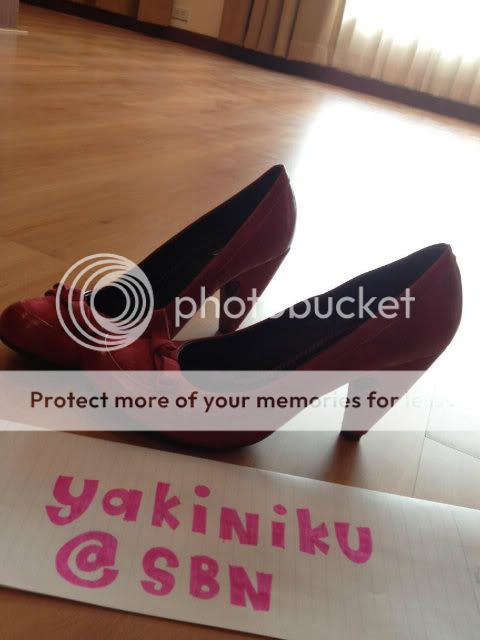 รองเท้าส้นสูงหนังสีแดง หลังเท้าเป็นหนังกลับ size 38 ขาย 1590