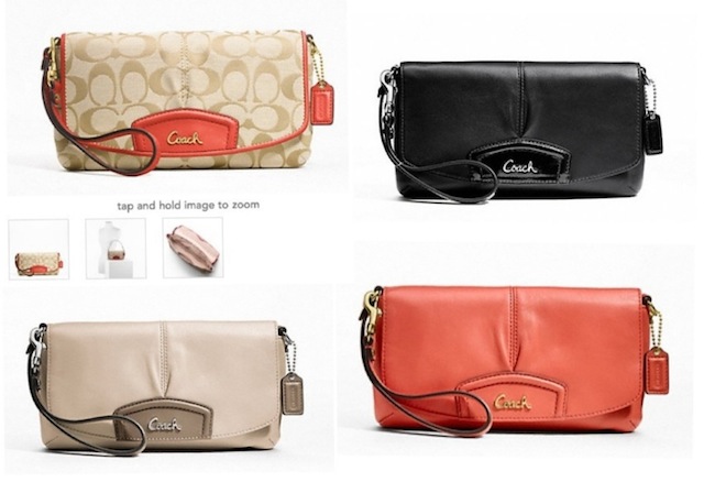 3. COACH LEATHER LARGE FLAP WRISTLET กระเป๋าคล้องแขนใบใหญ่ ปรับสายเป็นสะพายบ่าก็ได้ค่ะ มีช่องใส่บัตรได้8ใบ ราคา2,800บาท---SALE 2,600---