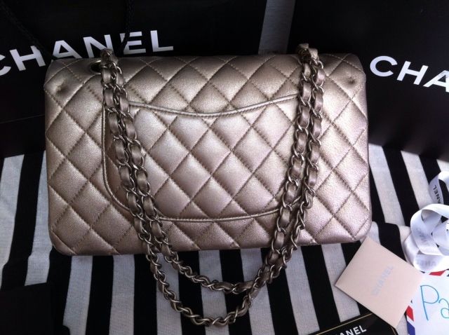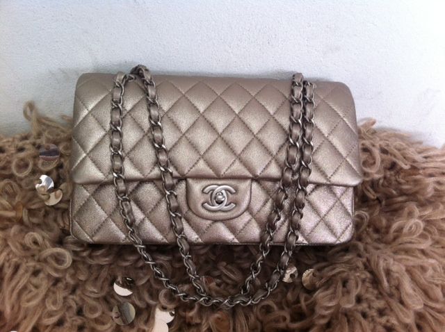 USED CHANEL MEDIUM CHAMPAGNE CALF SKIN MATTE HARDWARE 129000