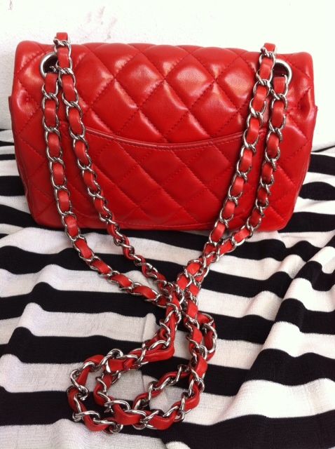 USED CHANEL 8" สีเเดงสดสวยงดงามมากๆคะ กระเป๋ามี4รูสามารถปรับเป็นสายสั้นสายคู่สายยาวได้ตามชอบใจคะ สีเเดงสดสวยงามหายากมากคะ