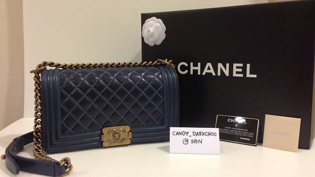 CHANEL BOY MEDIUM SHINY CALFSKIN NAVY BLUE WITH GHW