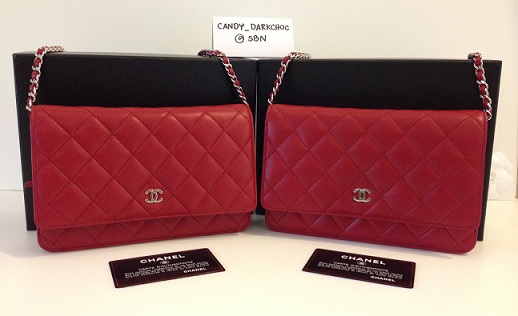 CHANEL WALLET ON CHAIN RED LAMPSKIN