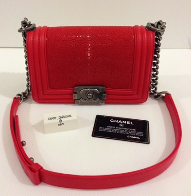 CHANEL BOY GRAIN LEATHER FLAB BAG RED 8"