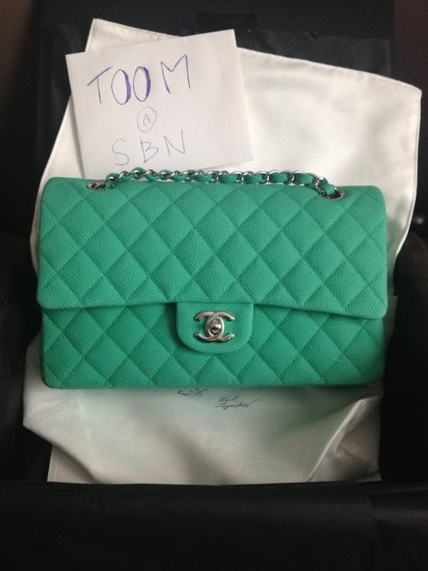 Brand new Chanel classic 10" in Mint Green suede caviar SOLD KA บาทคะ อุปกรณ์ครบ สีสดน่ารักมากๆคะ สีใหม่่ของซีซันนี่เลยคะ