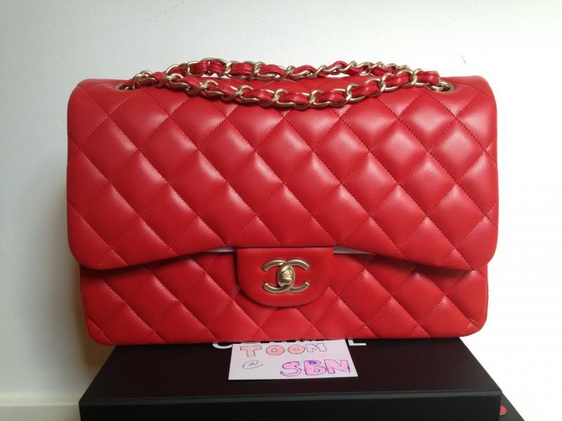 Brand new Chanel classic jumbo lambskin leather with matte gold chain in RED holo18*** 155,000 baht