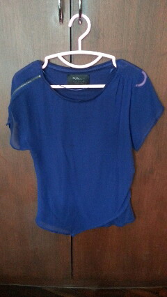 ZARA TOP blue chiffon w zip size s used like new sell 700 bht