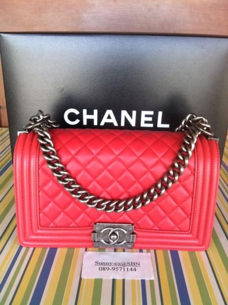 Brand new Chanel Boy 10" matte calf skin in red 125,000 THB.