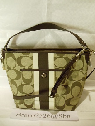 [/IMG]Coach 10055 hampton weekend signature stripe shoulder bag สี khaki/mahog ราคา 5700