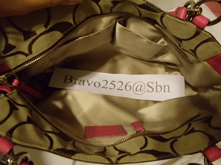 [/IMG]Coach 19046 signature tote khaki/purple, khaki/persimmon ราคา 4500