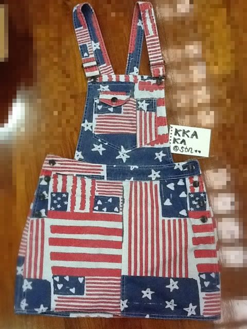 เอี๊ยมกระโปรงยีนส์ลายธง น่ารักมากๆ ซักแล้วแต่ยังไม่ได้ใส่