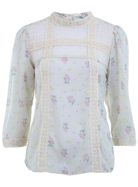 N104 Miss selfridge new with tag uk8 เสื้อลายดอก คาดลูกไม้ 2250