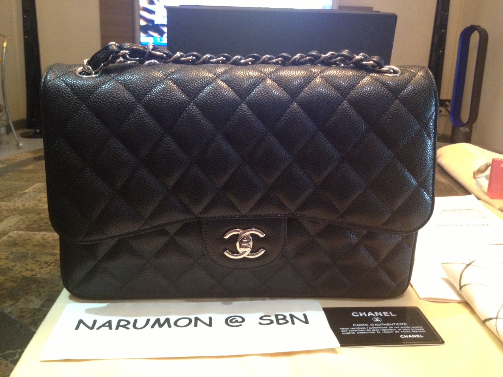 มาใหม่ค่ะ Chanel Classis Jumbo โซ่เงิน ราคา142,000 บาท ใบนี้รบกวนติดต่อ