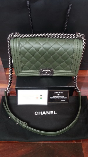 NEWCHANEL BOY Medium 10" Military Green Calf รักษาง่ายมาก ทนกว่ารุ่นเก่าเยอะคะ