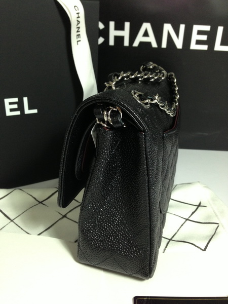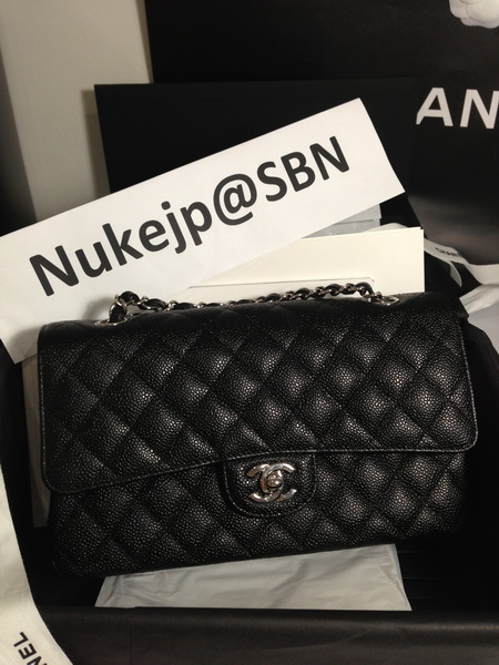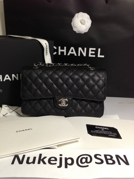 New !! Chanel Classic Medium 10" Caviar in Black โซ่เงิน