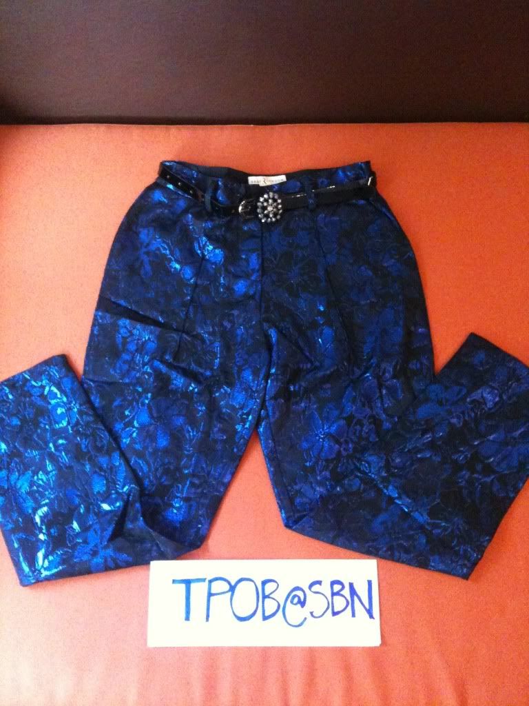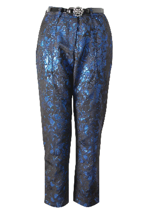 R12) Rare Jacquard Trousers กางเกงสีดำลายสีน้ำเงินพร้อมเข็มขัด