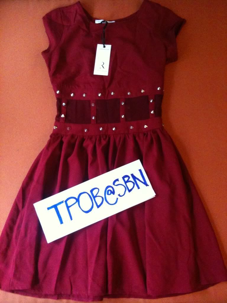 R7) Rare @ Topshop เดรสสีแดงช่วงเอวเป็นซีทรู แต่งหนามสีเงิน