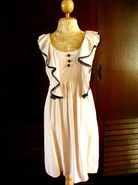 Dress สีชมพูอ่อน แต่งระบายที่อก ใส่แล้วพอดีตัว ไม่อ้วนนะคะ ทรงจะออกหวานๆหน่อยจ้า