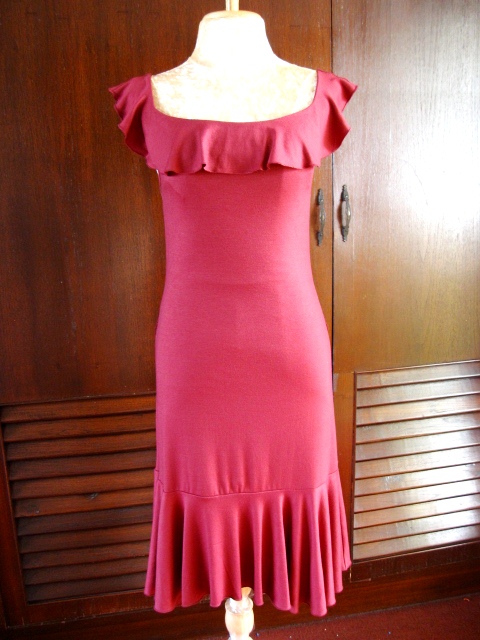 Dress ยาวระบาย สีแดงอมม่วง คุ้นๆว่าไม่เคยใส่เลยคะ แต่ตัดป้ายออกแล้ว