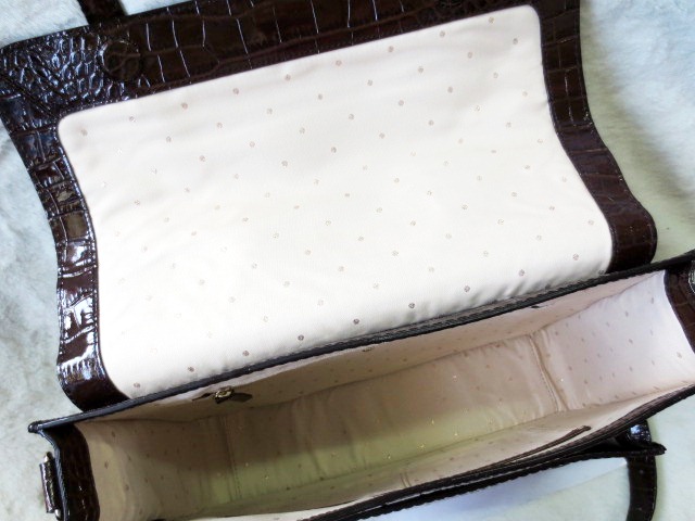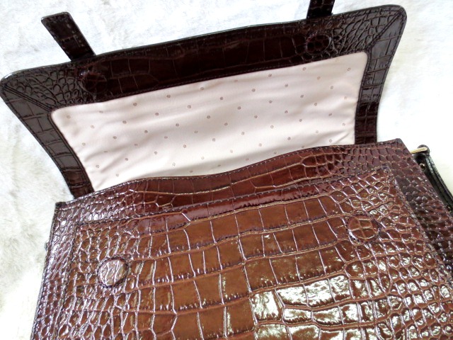 ใบนี้ Size ใหญ่สุด แต่น้ำหนักเบานะคะ เป็นของใหม่ ลายหนังจระเขัสีน้ำตาลแดง ด้านในบุผ้าลาย Pokka Dot สีทอง น่ารักมากๆคะ ทรงสวย พอดีซื้อมาผิดไซด์ ใจจริงอยากได้ใบเล็กๆ เลยขอขายต่ำกว่าทุนนะคะ ราคาซื้อ US$ 495 ใครที่ชอบกระเป๋าใส่ของได้เยอะๆต้องใบนี้เลยคะ