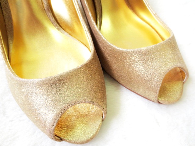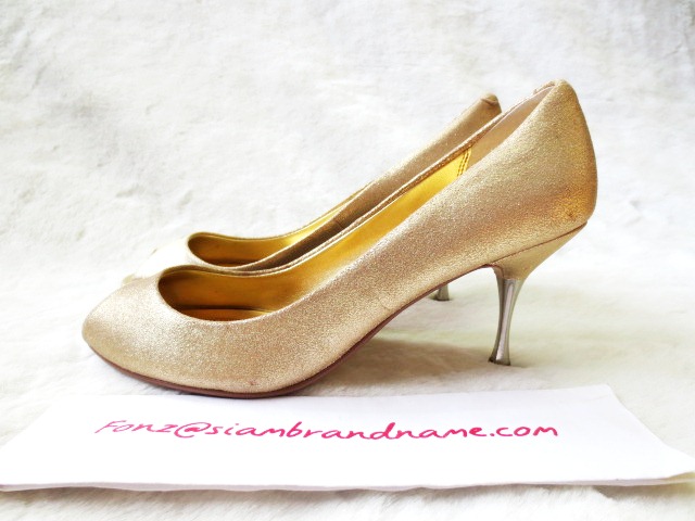 ซื้อมาใส่ออกงานไม่เกิน 2 ครั้งคะ สีทองด้านๆ หนังนิ่มมาก ส้นสูงประมาณ 2.5 นิ้ว เดินได้สบายๆคะ ซื้ออมา 3 พันกว่าบาท