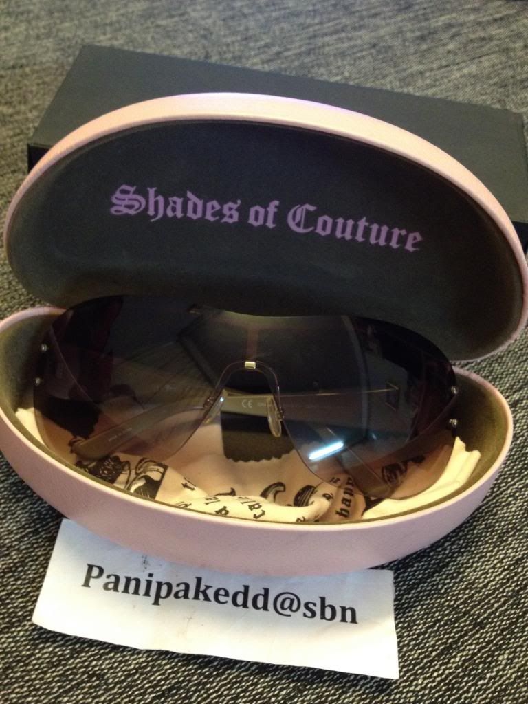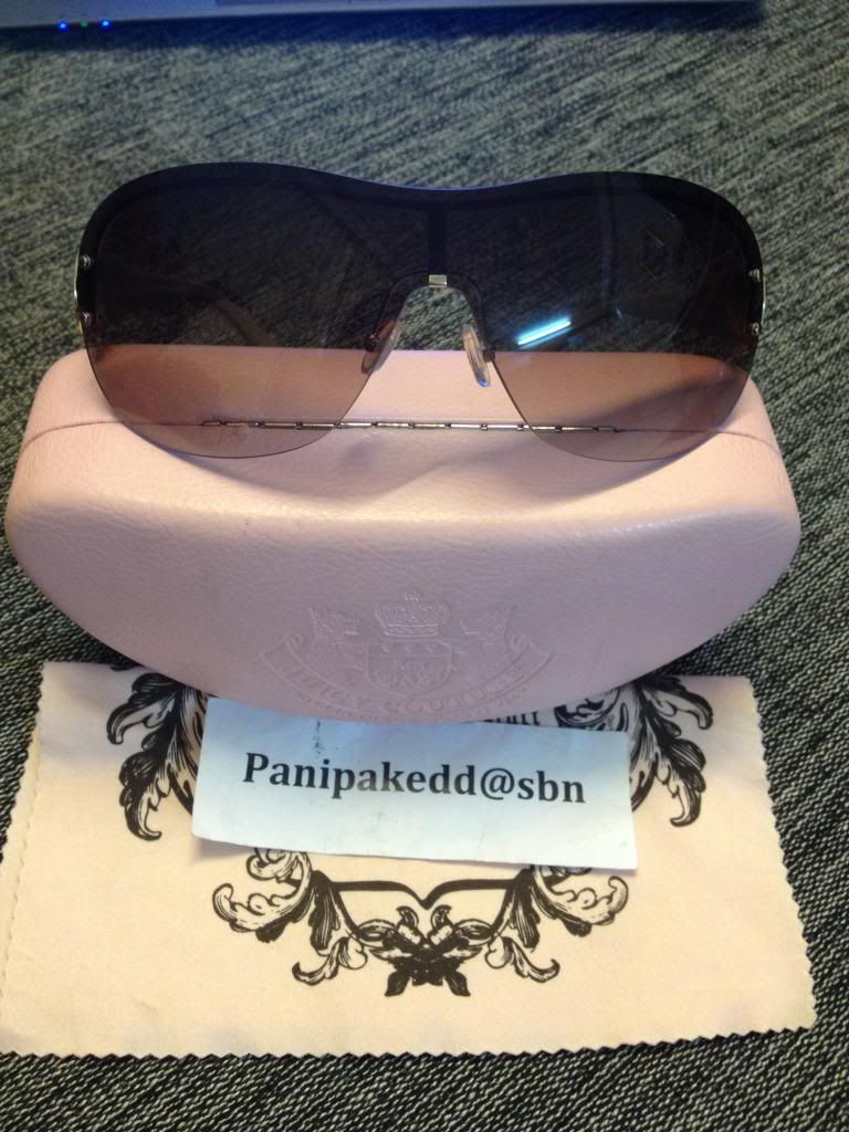 Used Juicy Couture Sunglass สภาพดีมากค่ะ มีกล่องหนัง ผ้าเช็ดแว่น แว่นตา เลนส์ไล่สี ใส่ออกมาสวยมากๆนะคะ เลนส์ไม่มีรอยขนแมว ขาแว่นไม่กาง กล่องไม่แตก เพราะเก็บรักษาอย่างดีค่ะ เลนส์ เป็นสีออกชมพูอมม่วง สวยมากค่ะ