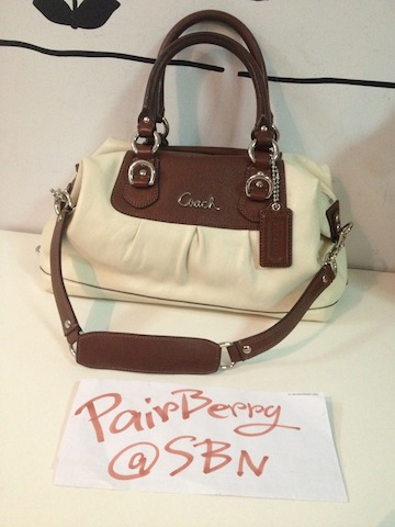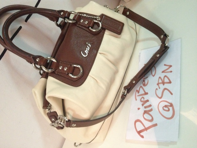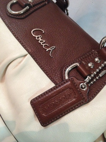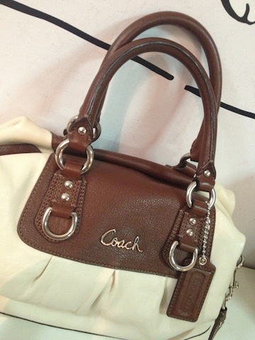 COACH หนังแท้ มือสอง ใช้ไม่กี่ครั้ง สีน้ำตาลขาว สวยคะ ใหม่มาก เพราะเราใช้ไม่กี่ครั้ง สภาพ 90% ขนาด 9 -10 นิ้ว โดยประมาณ
