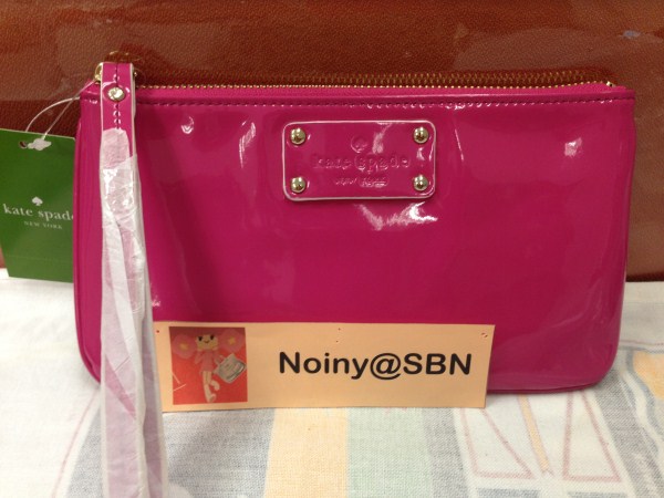 Kate Spade wristlet หนังแก้ว สีชมพูบานเย็น ราคา 2,500 บาท