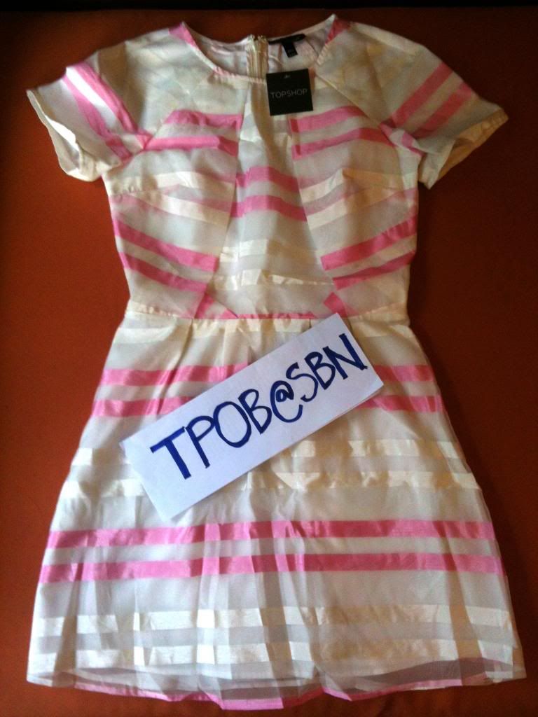 M18 TOPSHOP เดรสลายทางสีชมพูขาว