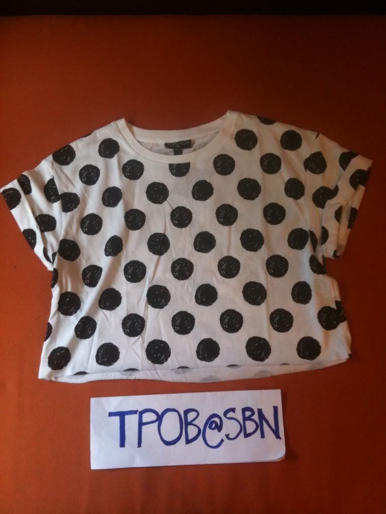 M15 TOPSHOP เสื้อยืดสีขาวตัวสั้นลายจุดแบบแพรี่พายและกระแต