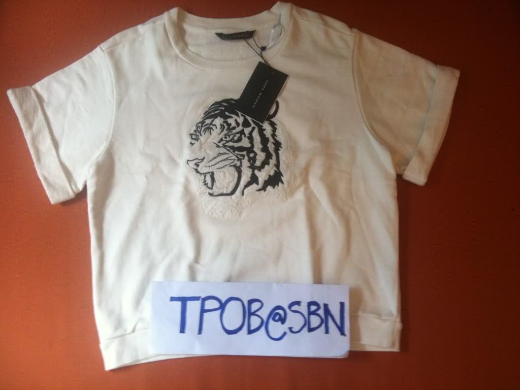 M14 Zara sweatshirt สีขาวลายหน้าเสือ แบบปอย