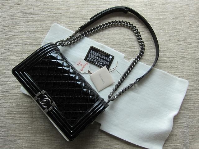 Brand new!! CHANEL BOY 10" หนังแก้ว โซ่เงินรมดำ ลุคไฮโซ ดูแลรักษาง่าย ไม่ดูดสี ไม่เป็นรอยง่าย