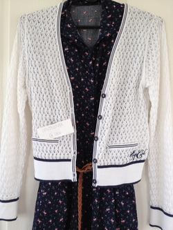 WHITE WITH ZIP POCKET BLOUSE UK6 อกไม่เกิน 35"