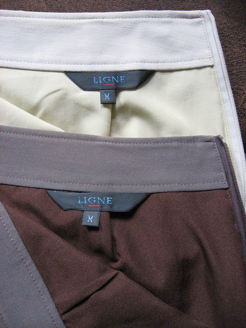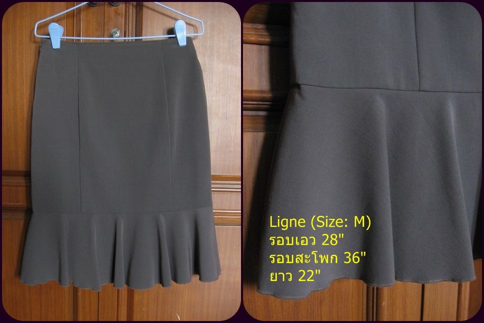 กระโปรง Ligne ผ้ายืดนิด ๆ สภาพดีมาก ซิปข้าง มีสองตัว สีเปลือกมังคุด กับ สีครีม --> 300 บาท