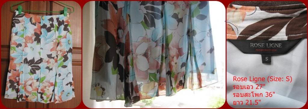 กระโปรง Rose Ligne ลายดอกไม้ ผ้าต่อ 8 ชิ้น ซิปข้าง สภาพดีมาก ผ้ายังเงาวิ้ง --> 300 บาท