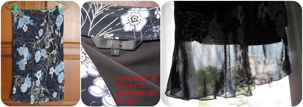 กระโปรง Ligne สีน้ำเงิน ลายดอกฟ้าขาว ซิปข้าง สภาพดีมาก ผ้าพริ้วสวยค่ะ --> 300 บาท