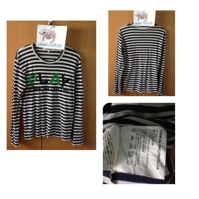 used comme sz L woman ใส่บ่อย ผ้านิ่มลง มีขุยๆบ้าง ลายทางแขนยาวสีน้ำเงินนะคะ