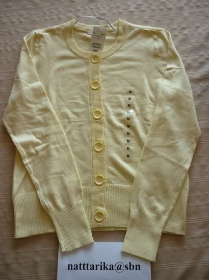 เสื้อคลุมคาดิแก้นสีขาว กระดุมหน้า แขนสั้นของ Esprit size S ใส่เข้าคู่กับสายเดี่ยวตัวบนเลยค่ะ