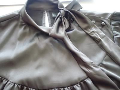 ช่วงคอสามารถรูดๆแล้วผูกเป็นโบว์ แขนสั้นจับจีบนิดมีกระดุม