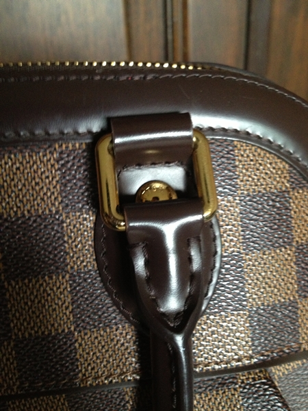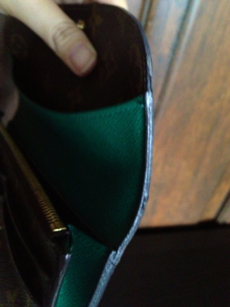 ขอบกระเป๋า ยาแนวลอกนิดหน่อย แต่หนังไม่ได้แยกออกจากกันค่ะ